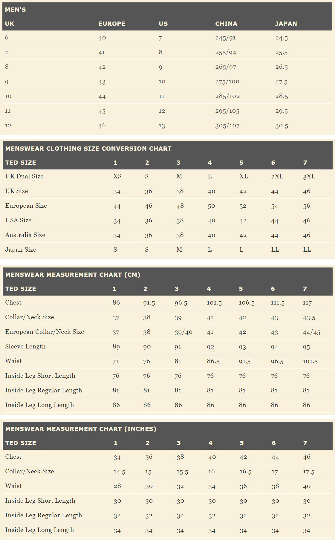 | Μέγεθος | Κολάρο (cm) | Κολάρο (ίντσες) | Στήθος Κανονική γραμμή (cm) |